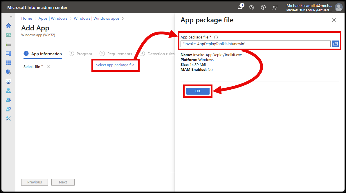 New-IntuneWin32AppPackage -SourceFolder .\PSAppDeployToolkit_Template_v4\ -SetupFile Invoke-AppDeployToolkit.exe -OutputFolder .